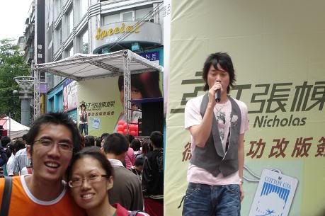It’s mother’s day and our last day in taipei. we managed to walk ard in XMD before heading to the airport… and we watching Zhang Dong Liang live! cool right!! (btw, the stage is right in front of Rainbow Hotel! so if u stay in Rainbow, u can see him in the comfort of your room!)